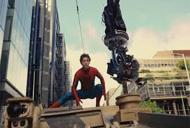 У 60-секундному ролику зірка в костюмі Людини-павука спілкується з юними фанатами та знімає сцену на чомусь, що схоже на танк, що мчить вулицею.